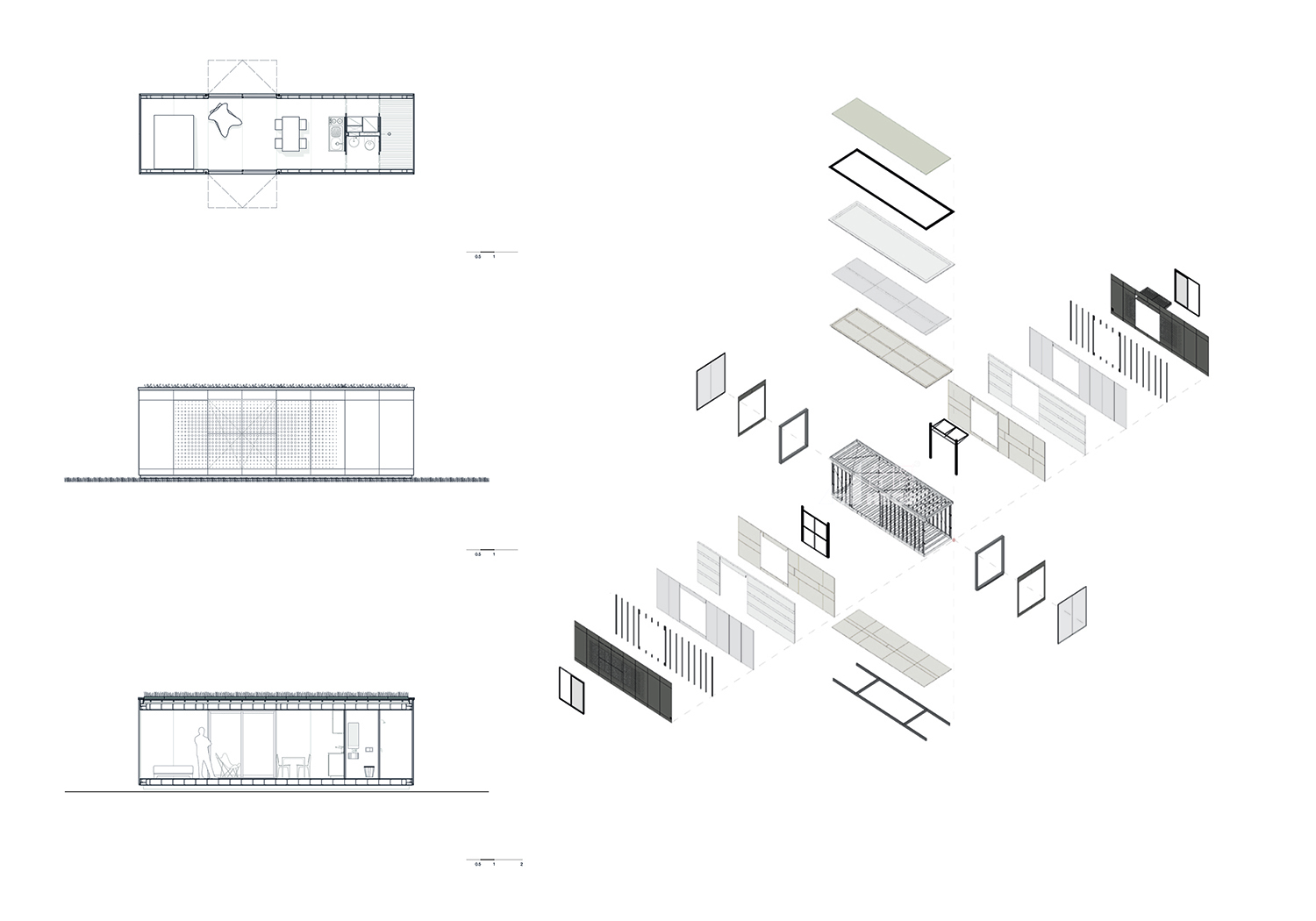 根據(jù)模塊的組成,MINIMOD可以有不同的用途,從周末的緊湊庇護(hù)所,活動(dòng)的小型展廳,到酒店和客棧,結(jié)合大量的模塊。這些模塊都是100%預(yù)制的,并通過卡車將其提升到一個(gè)確定的位置,或者將其拆成更小的部件,然后帶到地面進(jìn)行最終組裝。根據(jù)客戶的需求和預(yù)算,新模塊的擴(kuò)展和添加可以在初始安裝或過程中執(zhí)行。