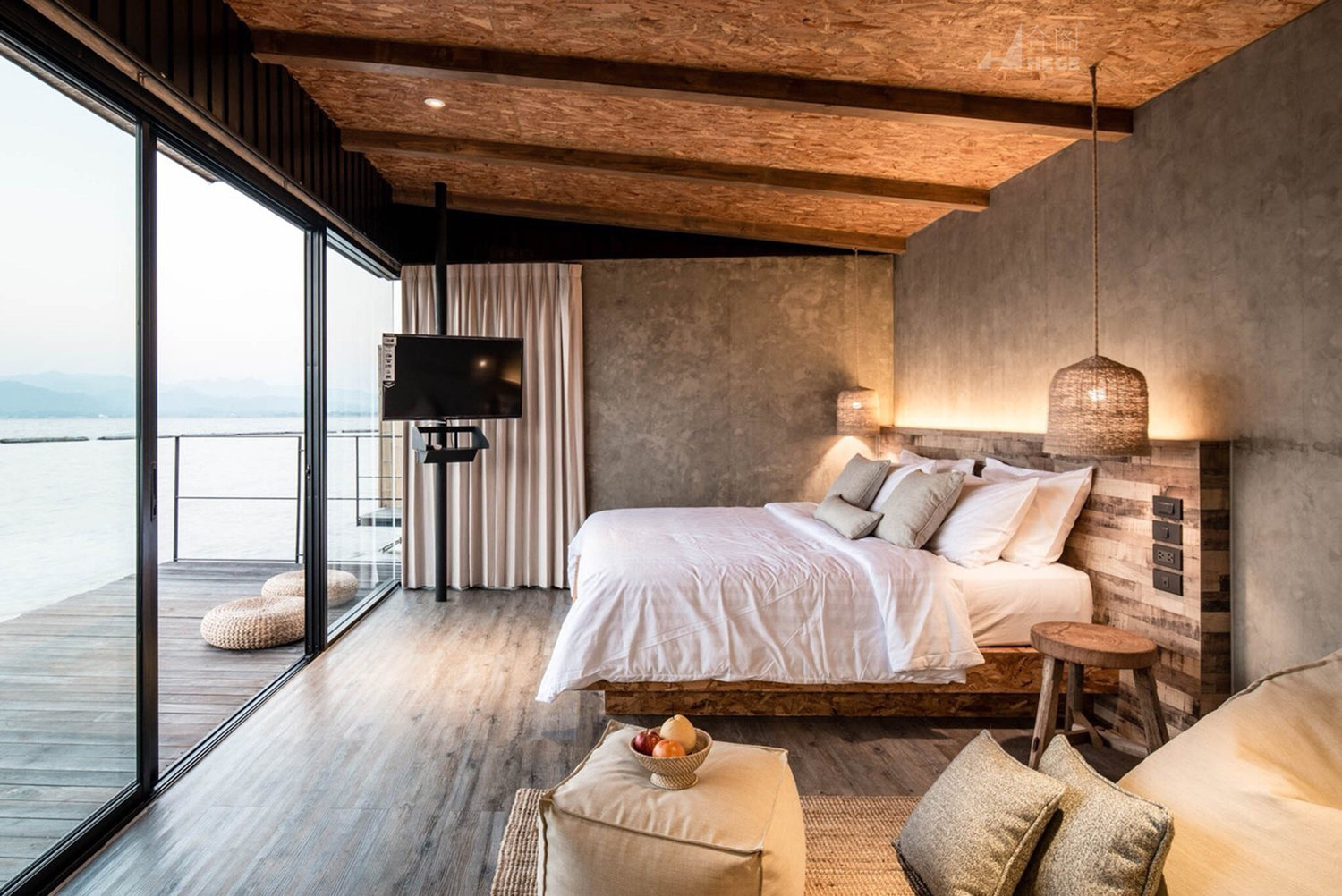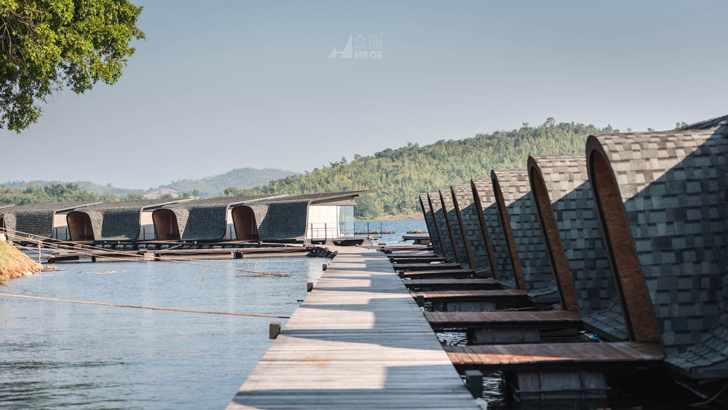 該度假酒店是一個漂浮度假勝地,以自然為導(dǎo)向,提供私人陸上住宿和舒適的漂流住宿。每個建筑都利用自然通風(fēng),形狀和顏色與山景和湖景的吸引力緊密地融合在一起。比例也符合環(huán)境。線條明顯地代表了湖濱的自然文脈,大堂設(shè)計基于月亮的方向,這意味著度假村的猜測可以享受令人驚嘆的“日出和日落”的風(fēng)景。