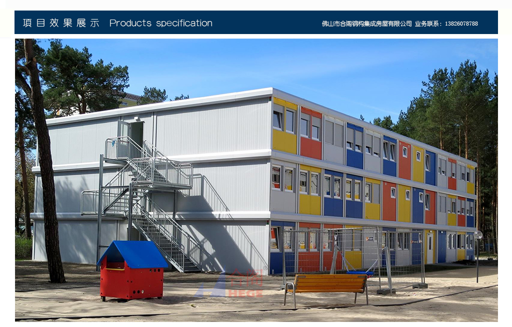 五、拆裝方便,性能優(yōu)越,穩(wěn)定牢固,防震性能好,防水防火防腐,重量輕。房屋為整體結(jié)構(gòu),內(nèi)有框架,墻體為鋼板,可用木板飾面,可整體遷移,使用壽命可達(dá)20年以上。