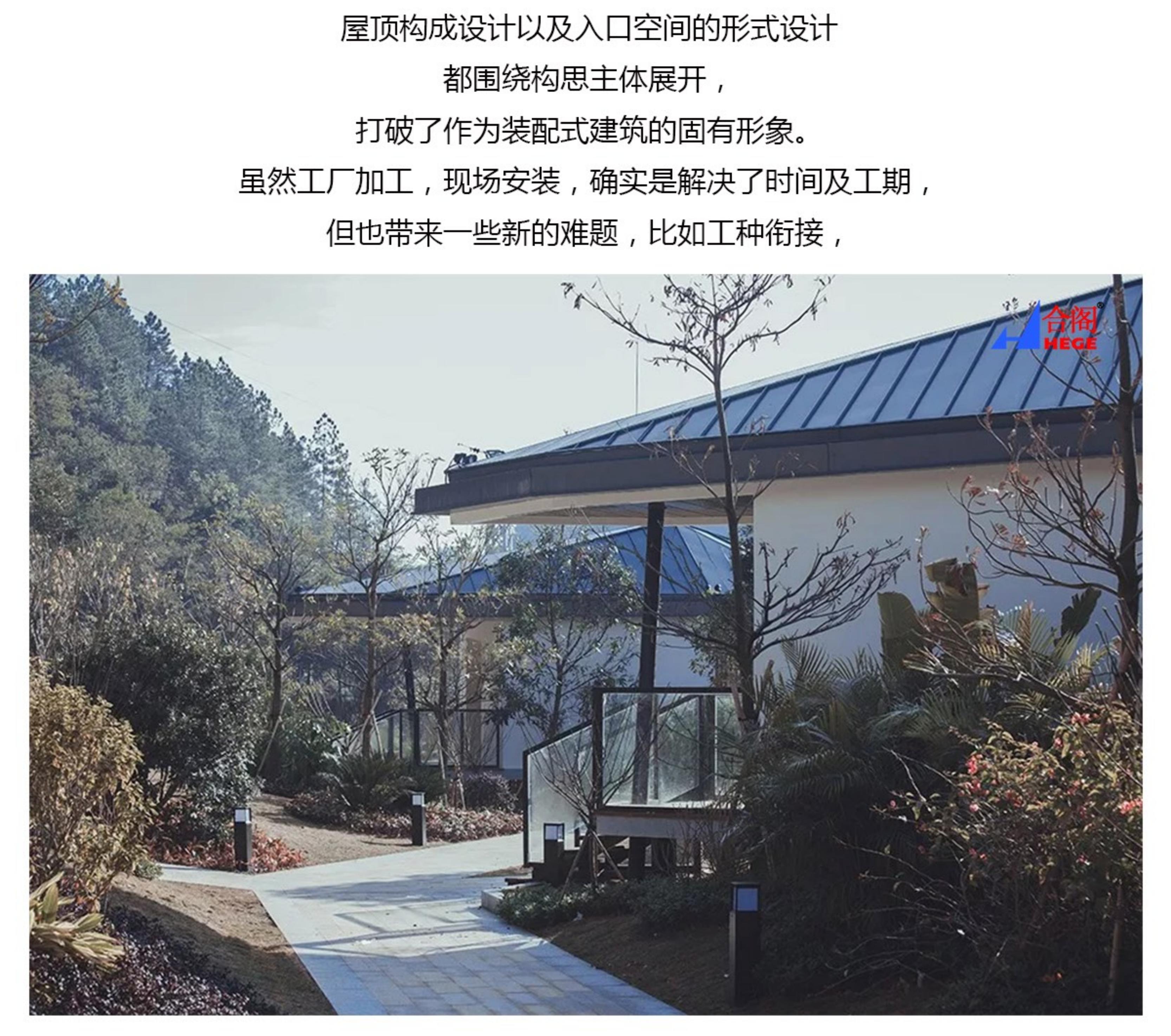 屋頂構(gòu)成設(shè)計以及入口空間的形式設(shè)計都圍繞構(gòu)思主體展開,打破了作為裝配式建筑的固有形象。