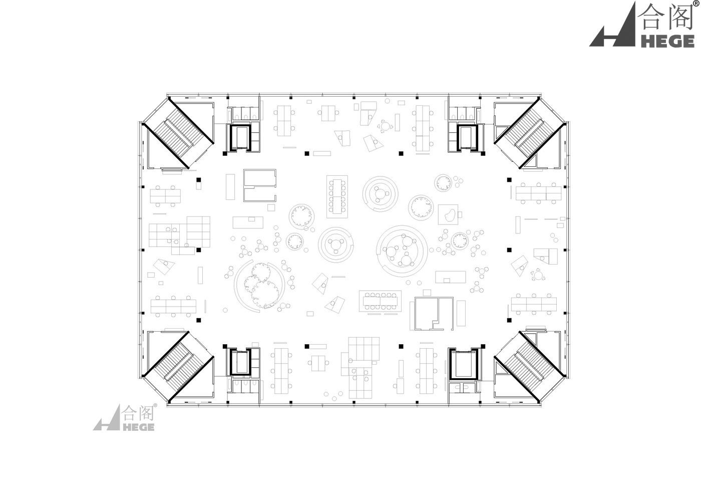 建筑一層的公共入口大廳通向一層和二層,所有樓層都通過建筑的樓梯連接,樓梯位于角落。四個樓梯一次又一次地從意想不到的角度出現(xiàn),舒適的內部允許各種各樣的聚會,從可定制的550個座位的禮堂,可以分割成三個獨立的大廳,到高度集中的個人工作區(qū)域。獨立的工作空間、可調節(jié)的辦公桌和封閉的隱私區(qū)域與分散在開放平面上的會議室混合在一起。