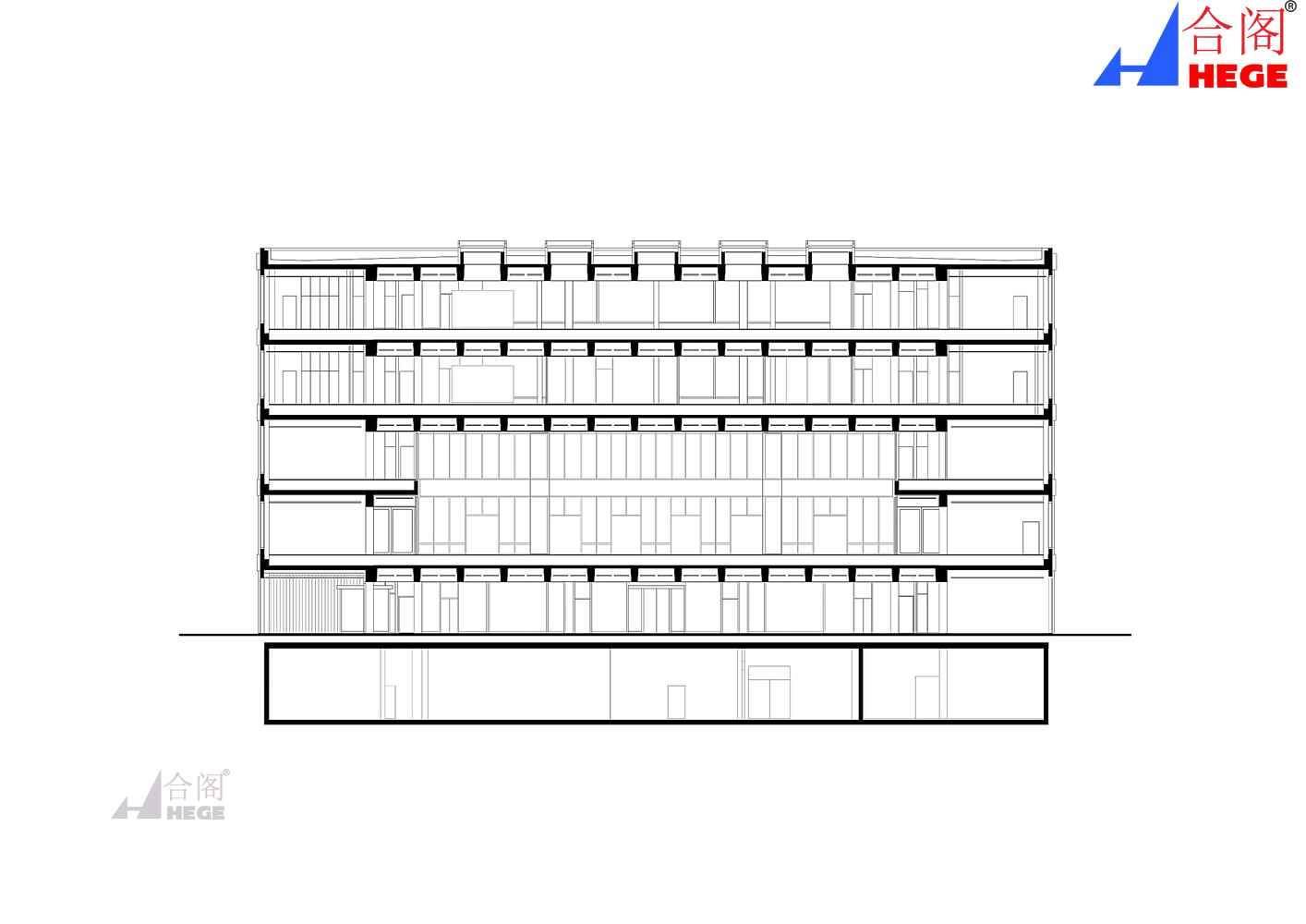 該項目是一個多功能辦公大樓。它讓人聯(lián)想到“工業(yè)宮殿”,傳達出一種尊嚴和代表性。垂直交叉的橫梁突出了其邊界,提出了其特定的結構概念,并參照其制造背景,高品質而冷靜的材料創(chuàng)造出一種精致而低調的優(yōu)雅。簡單的立方體是有重輕鋼混合搭建,高23米,占地面積為50 × 36米。最引人注目的是,將基礎設施和循環(huán)元素轉移到角落,釋放了地面上所有樓層的中心,形成一個暴露的、無柱的室內空間。這個工業(yè)立方體的開放展示了空間、視覺和象征品質,進一步體現(xiàn)在非凡的室內空間。