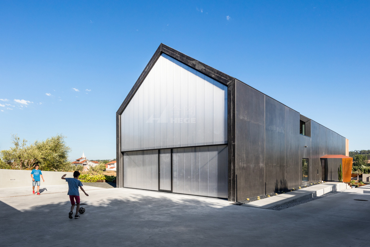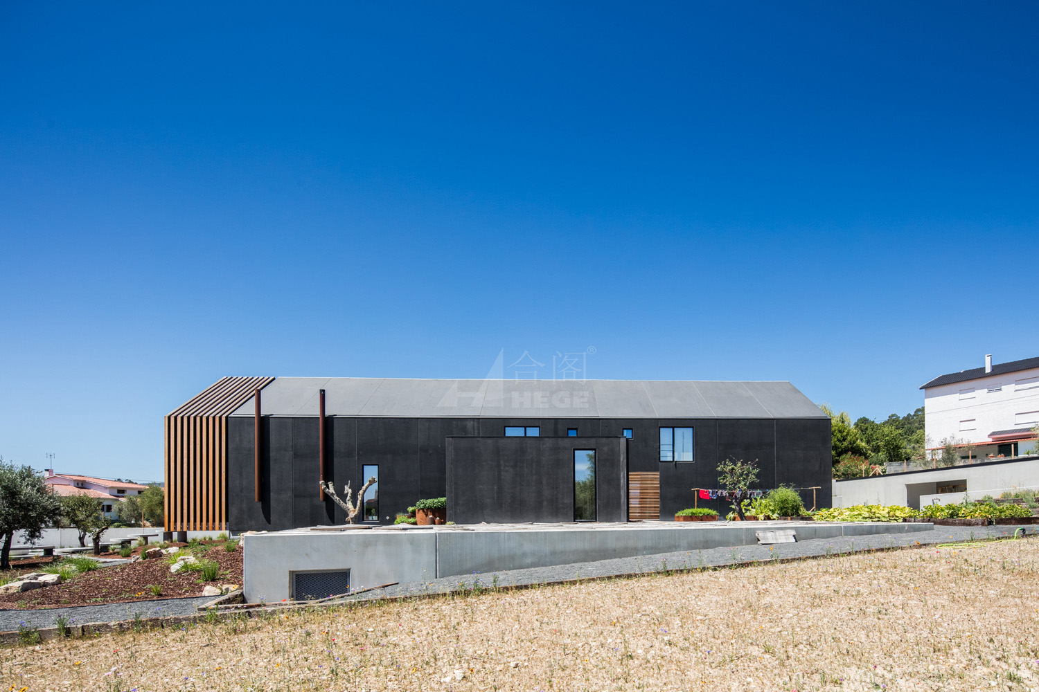 這個項目是基于模塊組成的原則建造的,讓屋頂和外墻形成一種獨特的韻律。建造運用了一種預(yù)制的黑色鋼構(gòu)板,這種材料能讓房屋和景觀更好的融合在一起,同時它的維護費用也較低。
