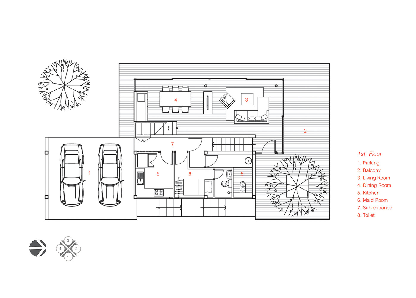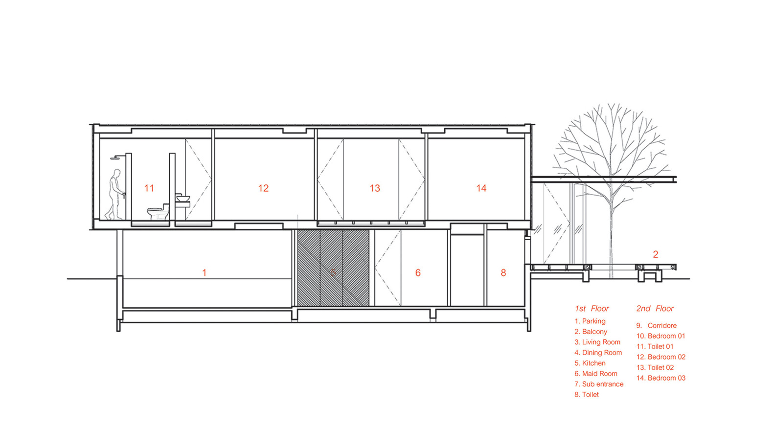 建筑具有一個(gè)封閉的內(nèi)部庭院,建筑的入口處與籬笆相連,這樣,庭院真正的出口就像是湖景一般,而正面看起來(lái)像是建筑的背面。
