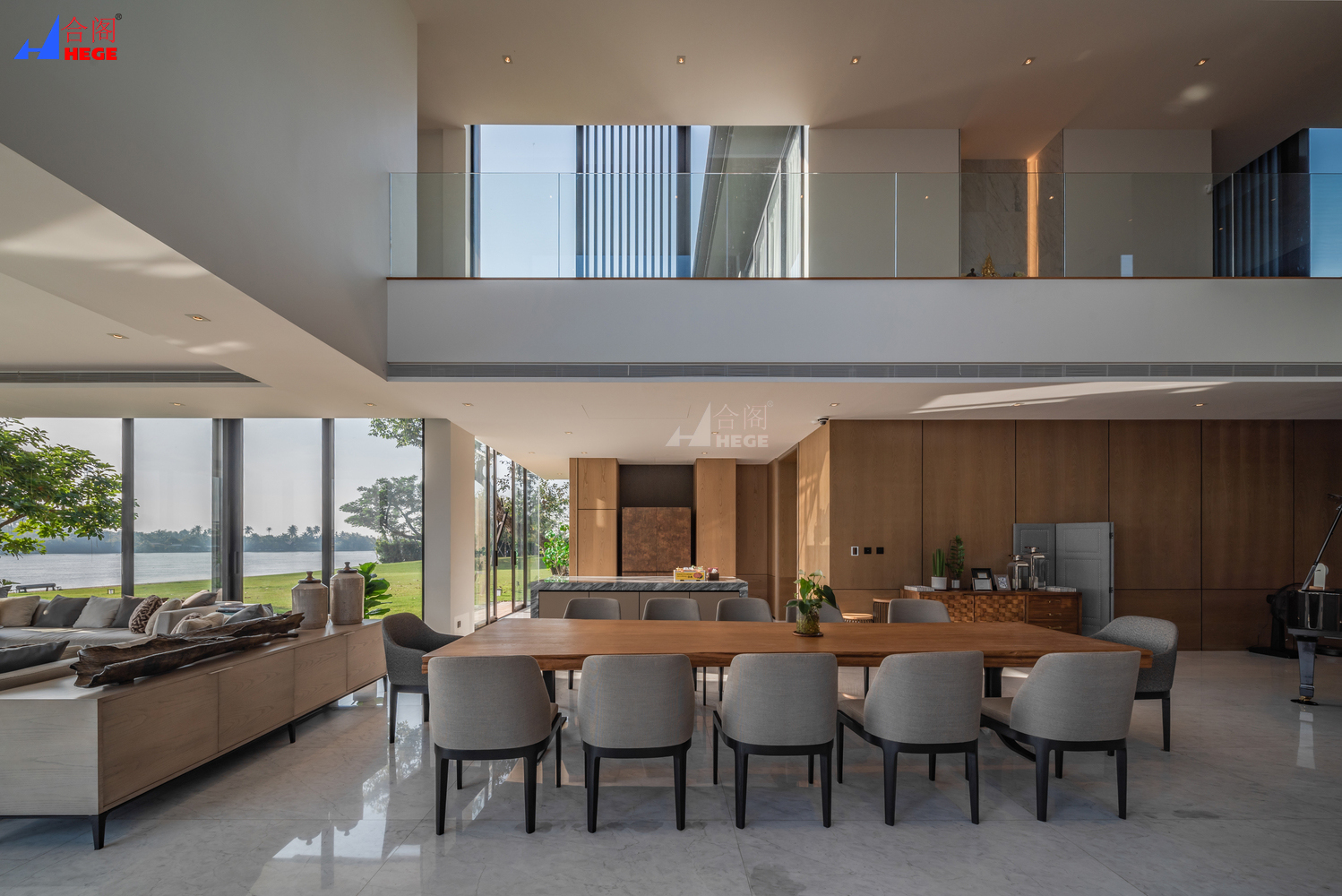 此外,玻璃鑲板也有助于完全打開(kāi)兩河匯合處的視野。雖然房子的外觀是現(xiàn)代熱帶風(fēng)格。但建筑師試圖通過(guò)應(yīng)用當(dāng)?shù)氐慕ㄖL(fēng)格進(jìn)行設(shè)計(jì),例如將泰國(guó)住宅的風(fēng)格應(yīng)用到這座住宅的高地下室中。從一樓可以看到它,看起來(lái)像一個(gè)被玻璃包圍的房子的地下室。然后離開(kāi)中心區(qū)域?yàn)閼敉鈪^(qū)域和一個(gè)大花園。它就像一個(gè)中心區(qū)域,將功能分配到不同的部分。