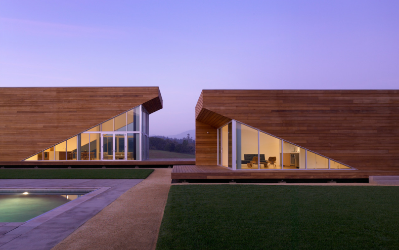 主題體量和客用體量與美景并置,并提供了對(duì)于加州景觀觀看的視角。自然與人工彼此鏡像,這兩個(gè)結(jié)構(gòu)變化又相互聯(lián)系。對(duì)于獨(dú)立車(chē)庫(kù)也是如此,這一一致性是由于普通材料和正式語(yǔ)言的混合使用,貫穿每個(gè)實(shí)體。住宅立方體這些凸角進(jìn)一步成為建筑師實(shí)現(xiàn)融合內(nèi)部和外部空間的關(guān)鍵。