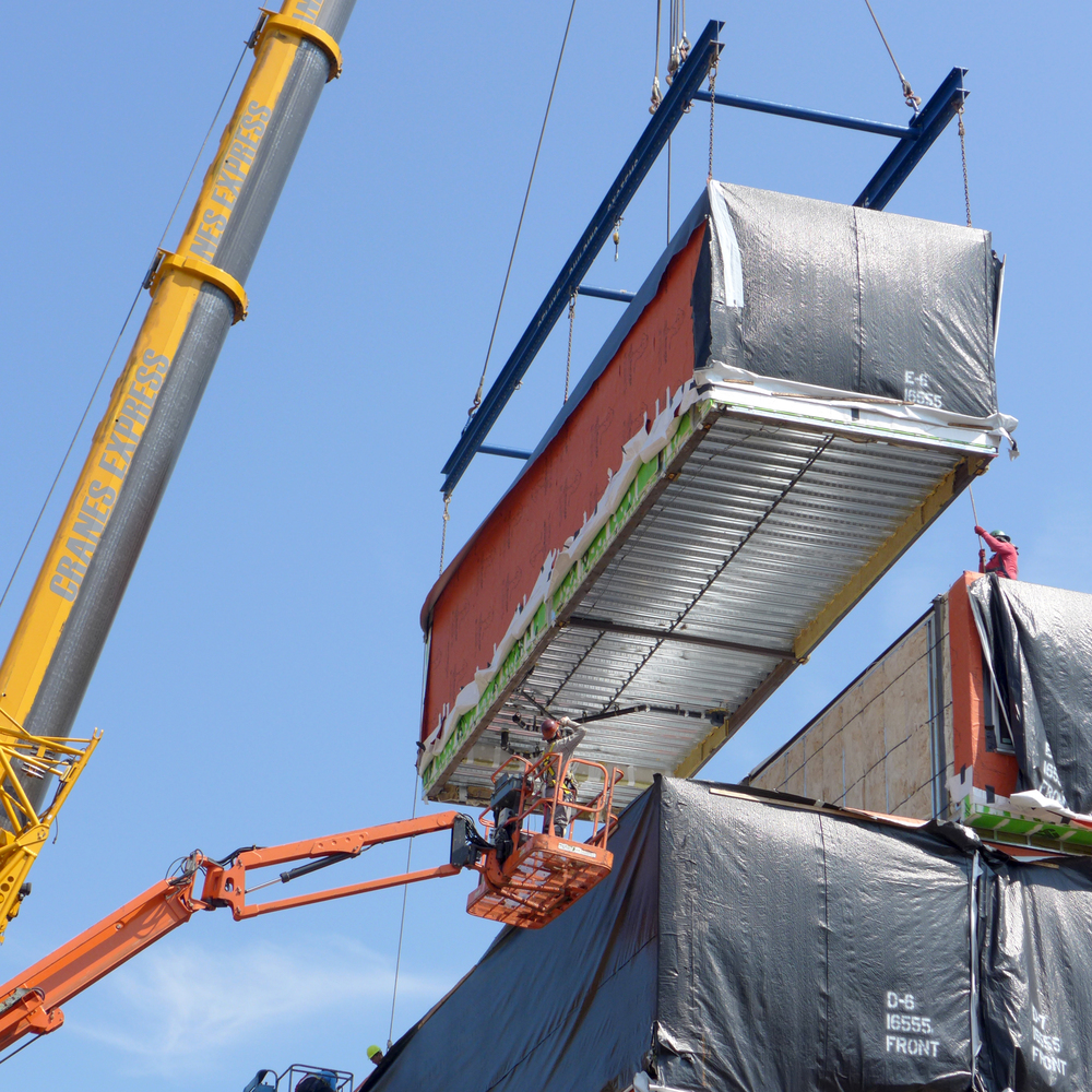 該項目有28個住宅單元(6個單間,6個一居室,14個兩居室,2個三居室)是用五十六個完整的工廠成品模塊在現(xiàn)場外預(yù)制建造的?;A(chǔ)設(shè)施和基礎(chǔ)建設(shè)在現(xiàn)場進行,在最初的三個月里,6層樓的建筑同時在工廠完成。在現(xiàn)澆混凝土基礎(chǔ)上建造了一個鋼柱網(wǎng)格結(jié)構(gòu),以承托堆疊的模塊。設(shè)計允許更寬的凈跨度,以便在第一層滿足商業(yè)租賃功能。安裝時間僅為四周。它的施工時間約10個月——比傳統(tǒng)施工方法短6個月。