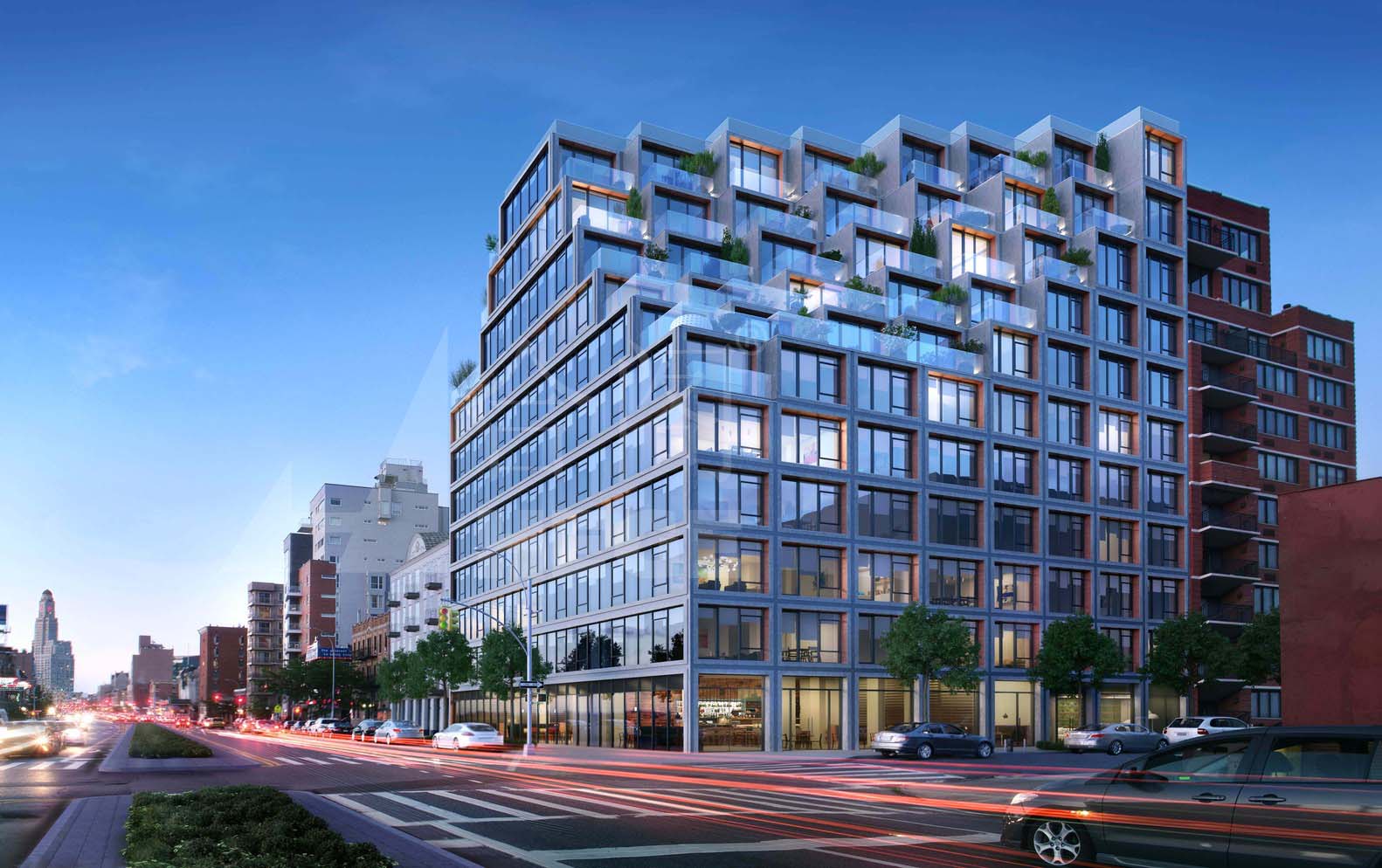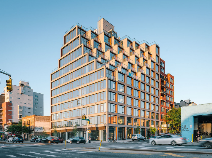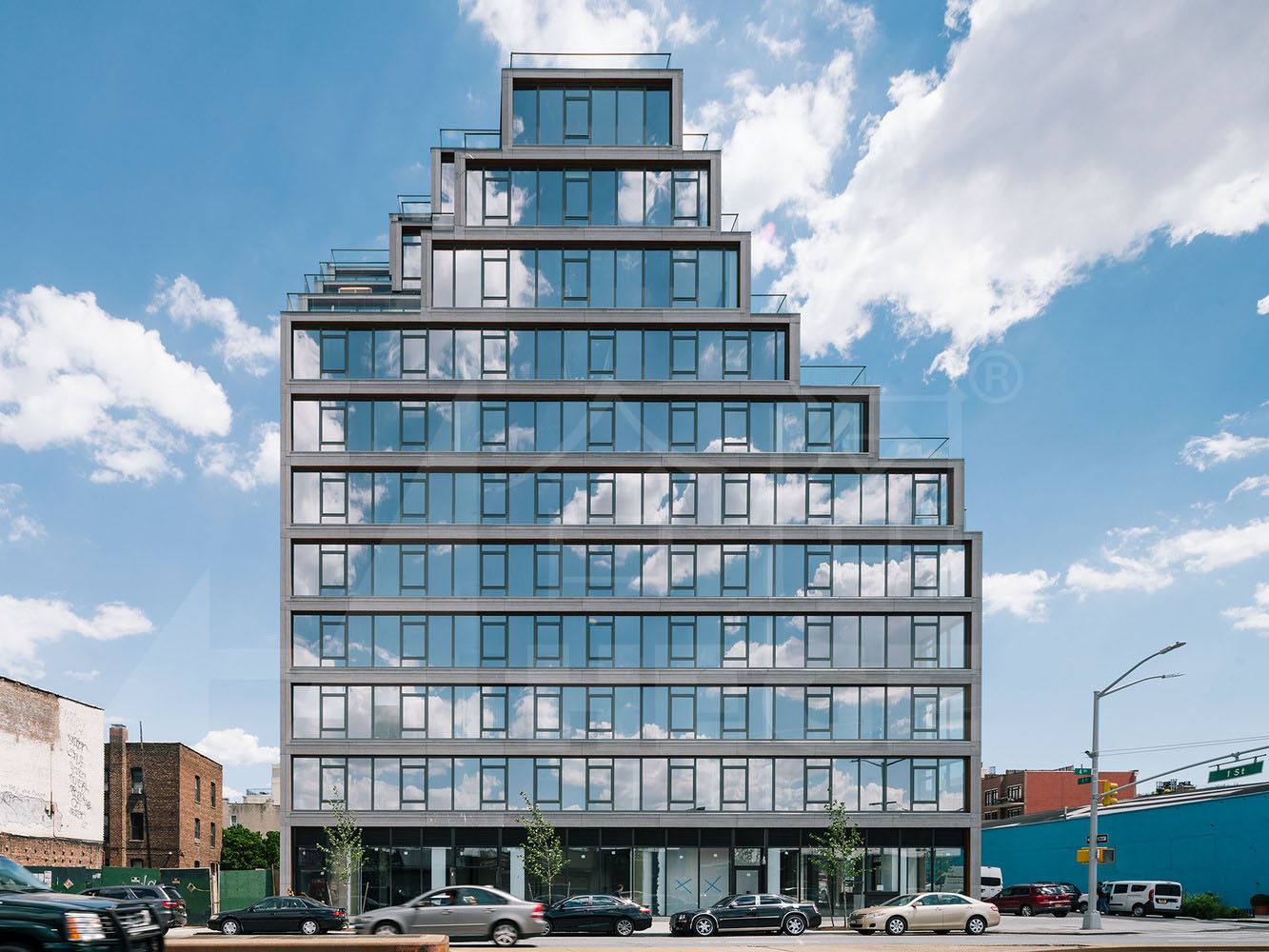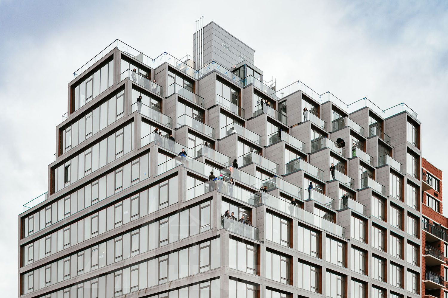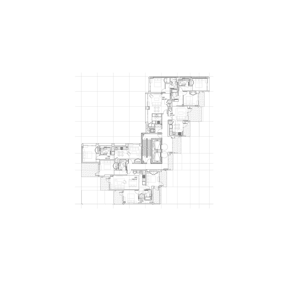 該建筑是一個(gè)模塊化公寓,由多個(gè)模塊單元組成。每個(gè)單元都可以再工廠制定好后運(yùn)輸?shù)浆F(xiàn)場(chǎng)進(jìn)行組裝?,F(xiàn)代簡(jiǎn)潔的線條和無(wú)瑕疵的幾何形態(tài)在建筑外部顯得尤為突出,開(kāi)敞的大堂,24小時(shí)門衛(wèi)和虛擬接待,具有更舒適,自然,幾乎禪宗般的光環(huán),突出各類不同材料。在大廳的休息區(qū),鮮活的綠植墻壁通過(guò)前后透明的玻璃,獲得充足的光照。