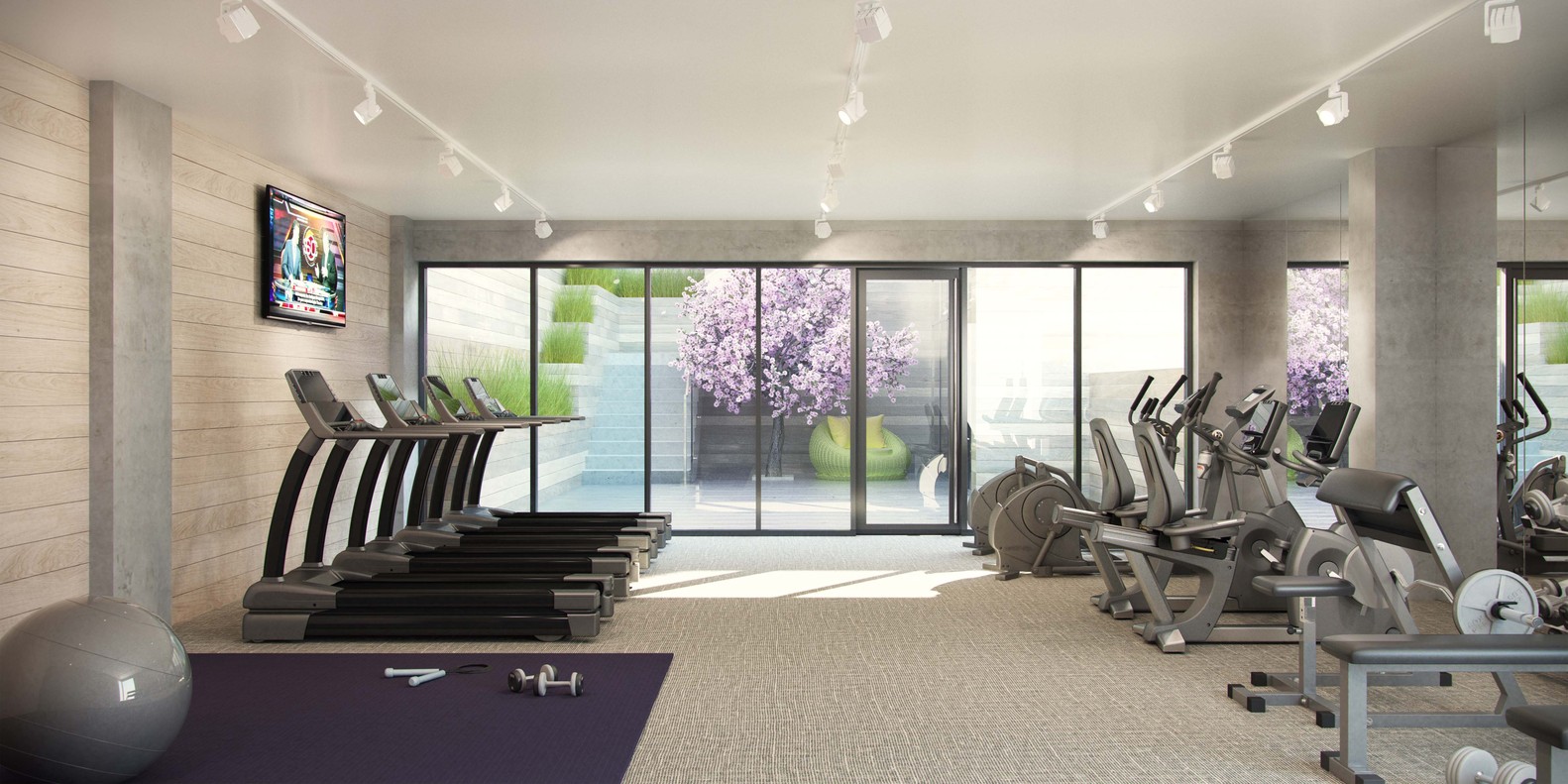 公寓設(shè)有一系列讓人心身愉悅的配套設(shè)施——尋常的有兩個(gè)陽(yáng)光滿溢的中庭,和一個(gè)有園林景觀的天臺(tái);讓人意想不到的是,豪華的大堂除了設(shè)有圖書(shū)館,還提供嬰兒推車的停泊服務(wù),瑜伽健身房等等,甚至還有寵物美容間。