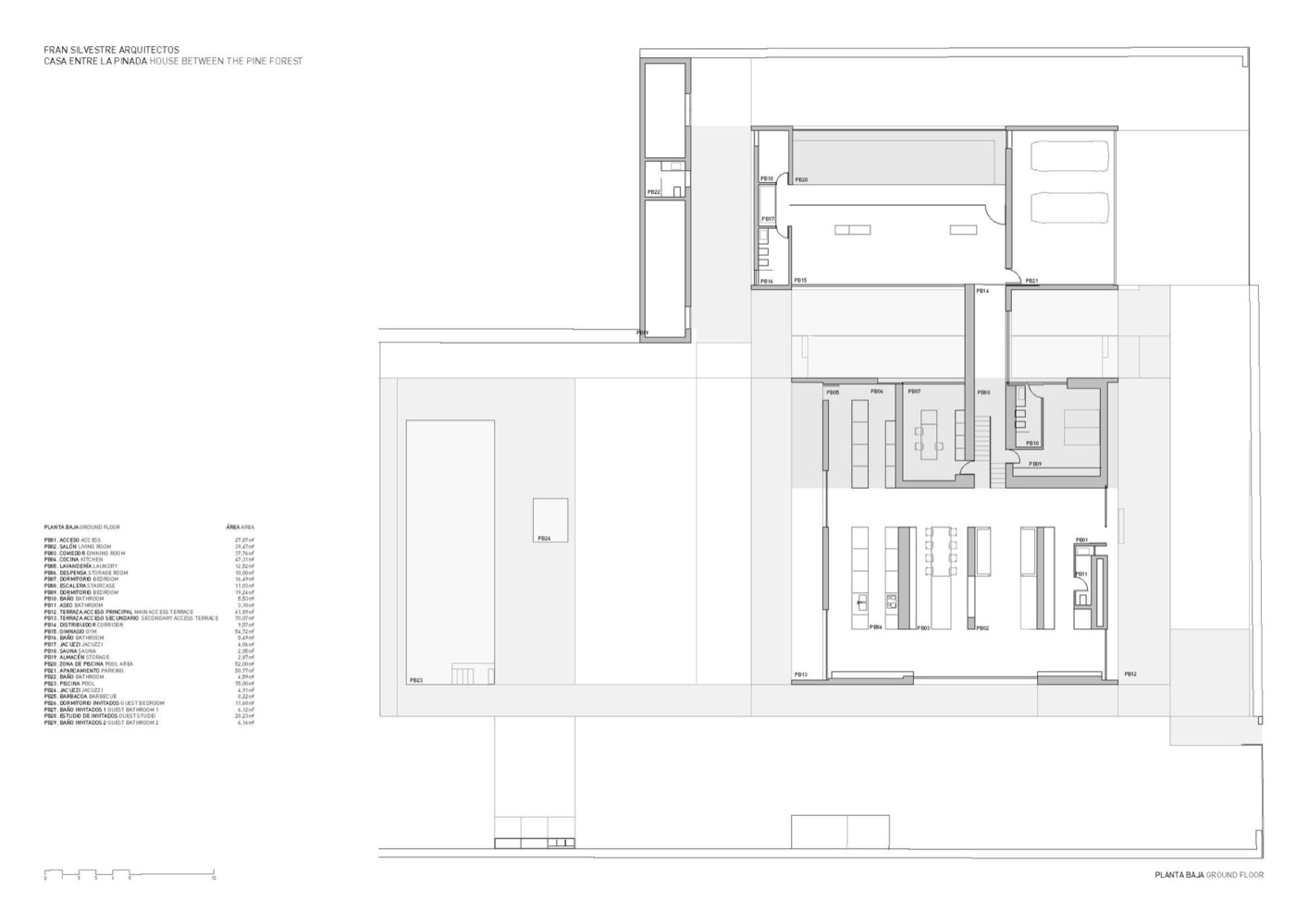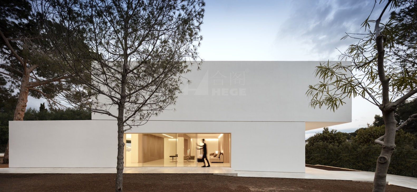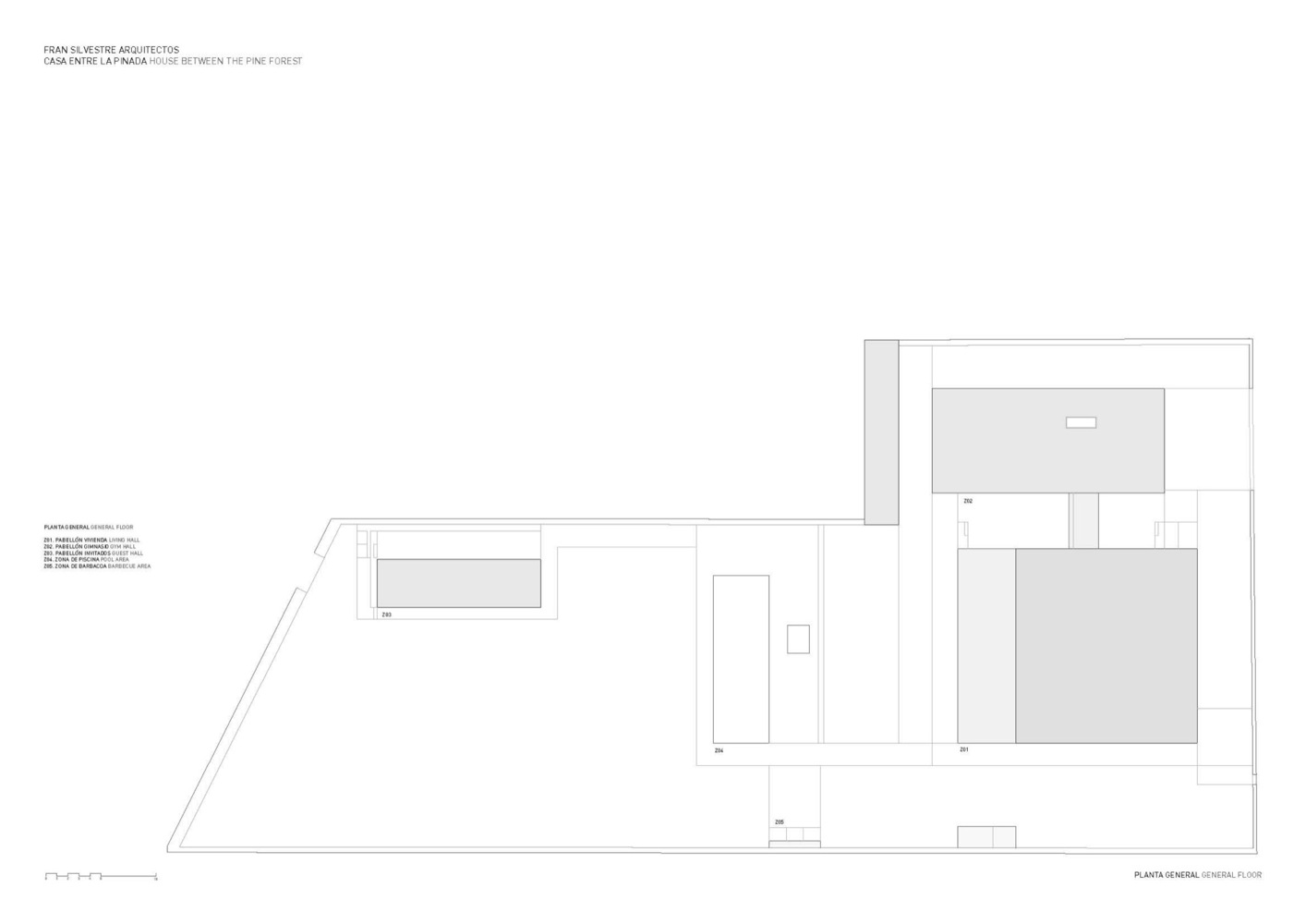 設(shè)計(jì)師在原有建筑的上面新增加了一個(gè)樓層,成為了這個(gè)新建筑一個(gè)新的空間。這樣的話,休閑空間就有了地方,它可以包含在總的建筑范圍內(nèi),并將那些小空間區(qū)域(院落,狹窄區(qū)域)聚合在一起后呈現(xiàn)出來,就像傳統(tǒng)的地中海建筑一樣。在室內(nèi),以中間層系統(tǒng)為主創(chuàng)建了一個(gè)大的不規(guī)則空間,其中有著各種不同的寬度和高度。原有建筑的支承結(jié)構(gòu)里面設(shè)置了一些固定的家具,它們被涂成了灰色,像是樹干一樣,讓人感覺就像住在花園里一樣。這座位于松樹林中的房子給人的感覺是一會(huì)兒像是穿梭在樹林里,一會(huì)兒像是生活在美好的回憶中。