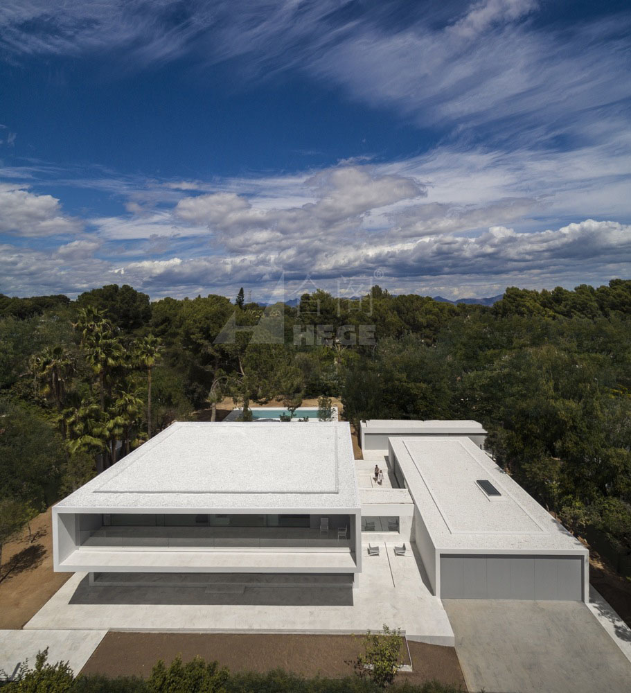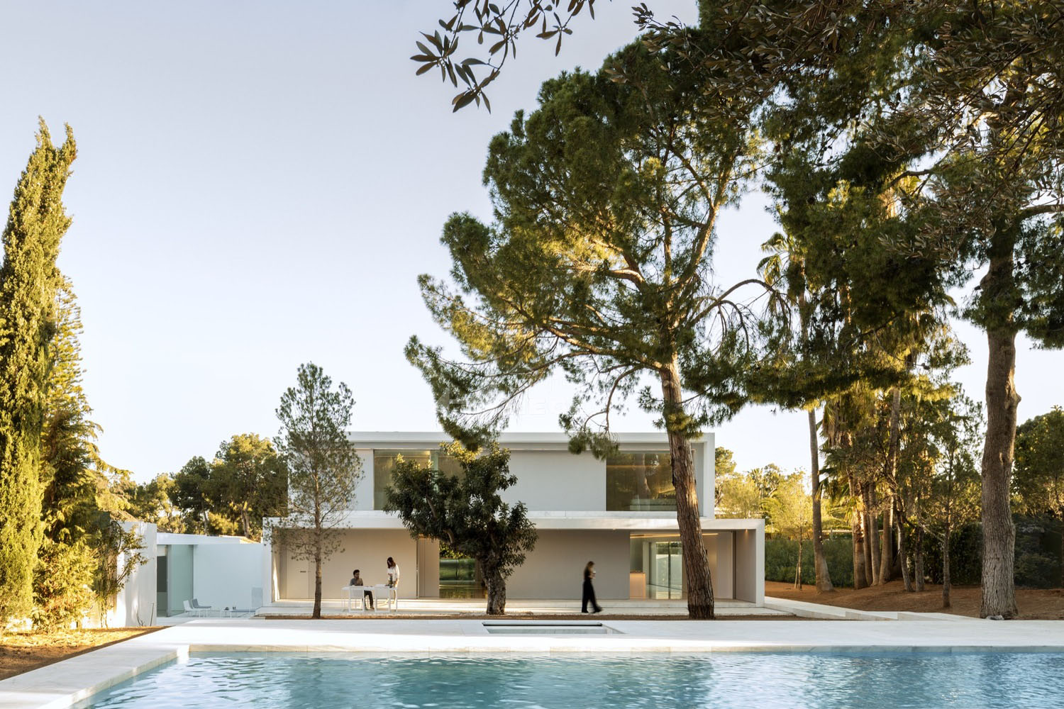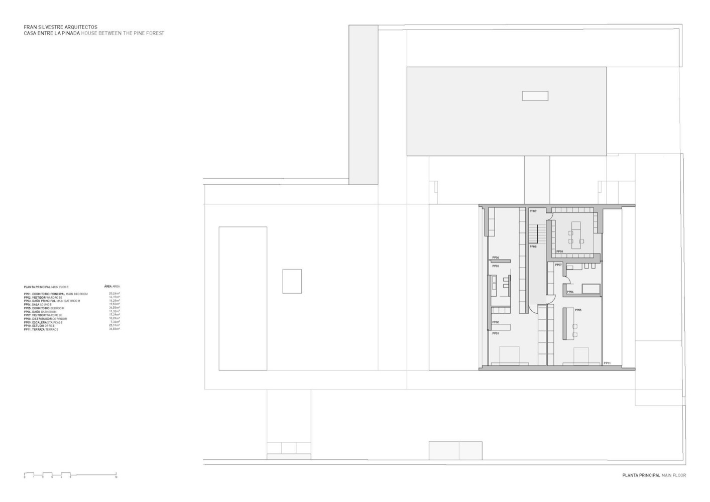 設(shè)計(jì)師在原有建筑的上面新增加了一個(gè)樓層,成為了這個(gè)新建筑一個(gè)新的空間。這樣的話,休閑空間就有了地方,它可以包含在總的建筑范圍內(nèi),并將那些小空間區(qū)域(院落,狹窄區(qū)域)聚合在一起后呈現(xiàn)出來,就像傳統(tǒng)的地中海建筑一樣。在室內(nèi),以中間層系統(tǒng)為主創(chuàng)建了一個(gè)大的不規(guī)則空間,其中有著各種不同的寬度和高度。原有建筑的支承結(jié)構(gòu)里面設(shè)置了一些固定的家具,它們被涂成了灰色,像是樹干一樣,讓人感覺就像住在花園里一樣。這座位于松樹林中的房子給人的感覺是一會(huì)兒像是穿梭在樹林里,一會(huì)兒像是生活在美好的回憶中。