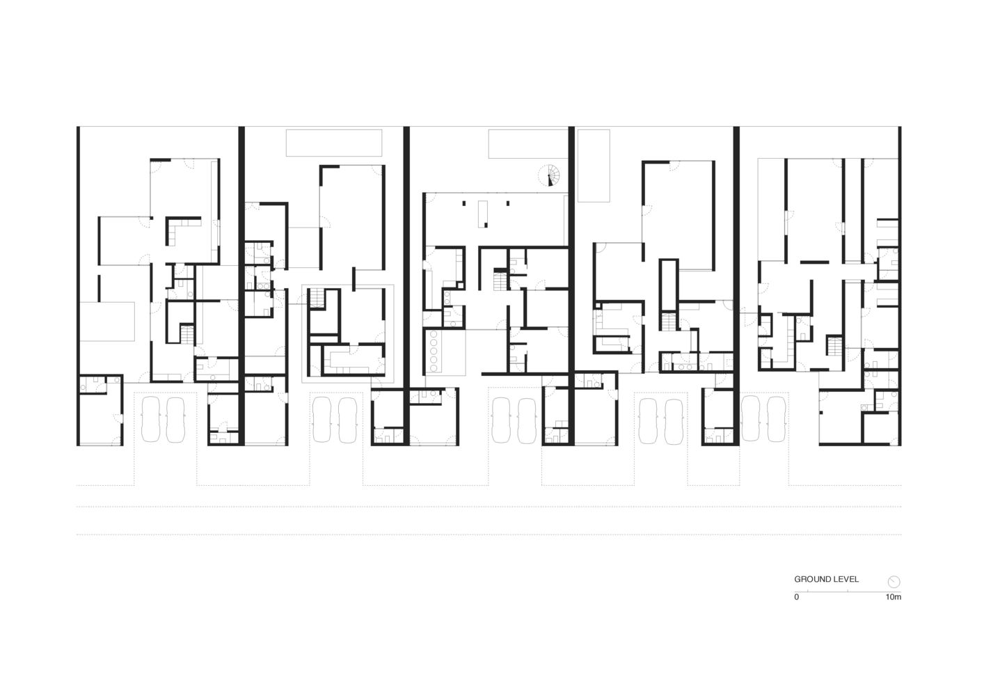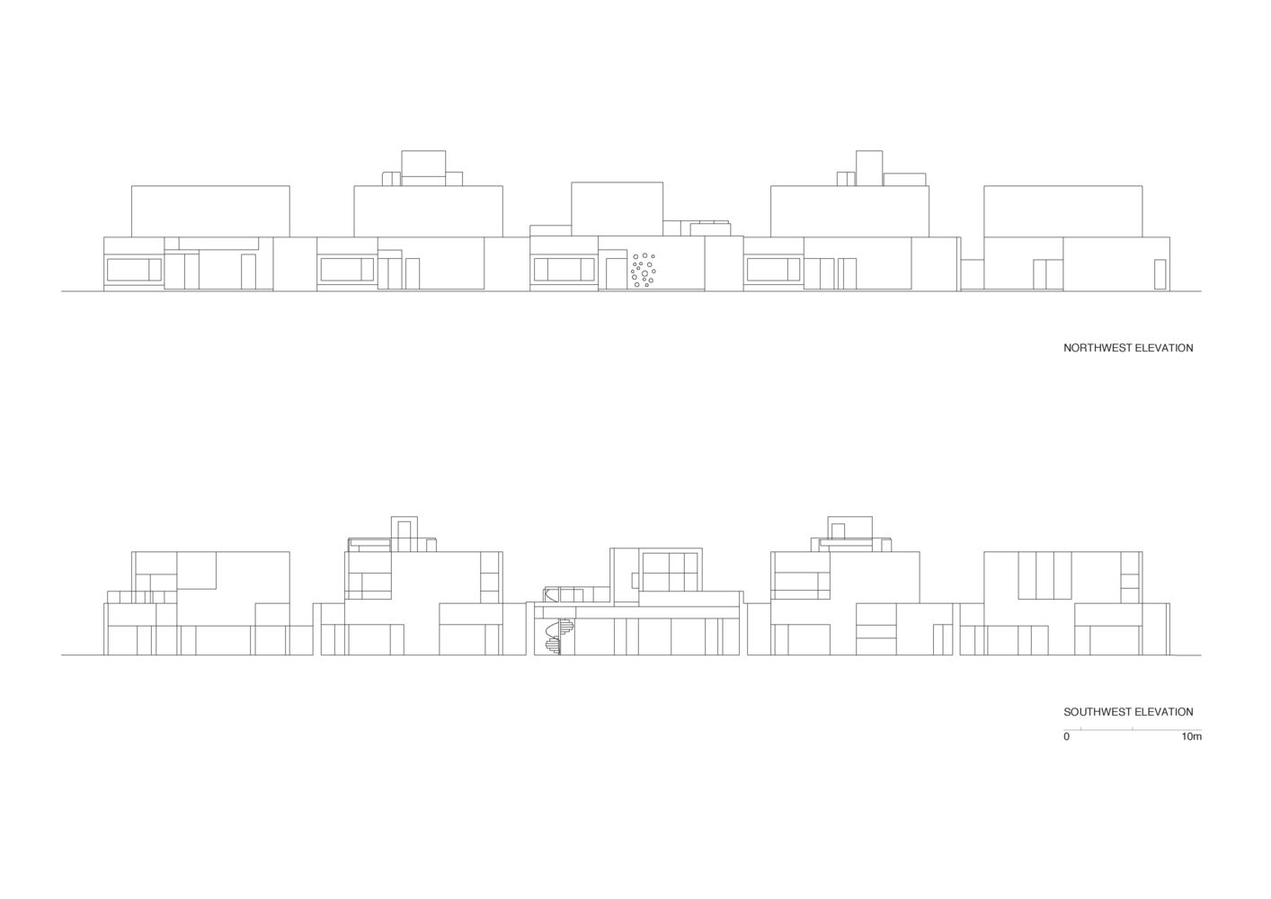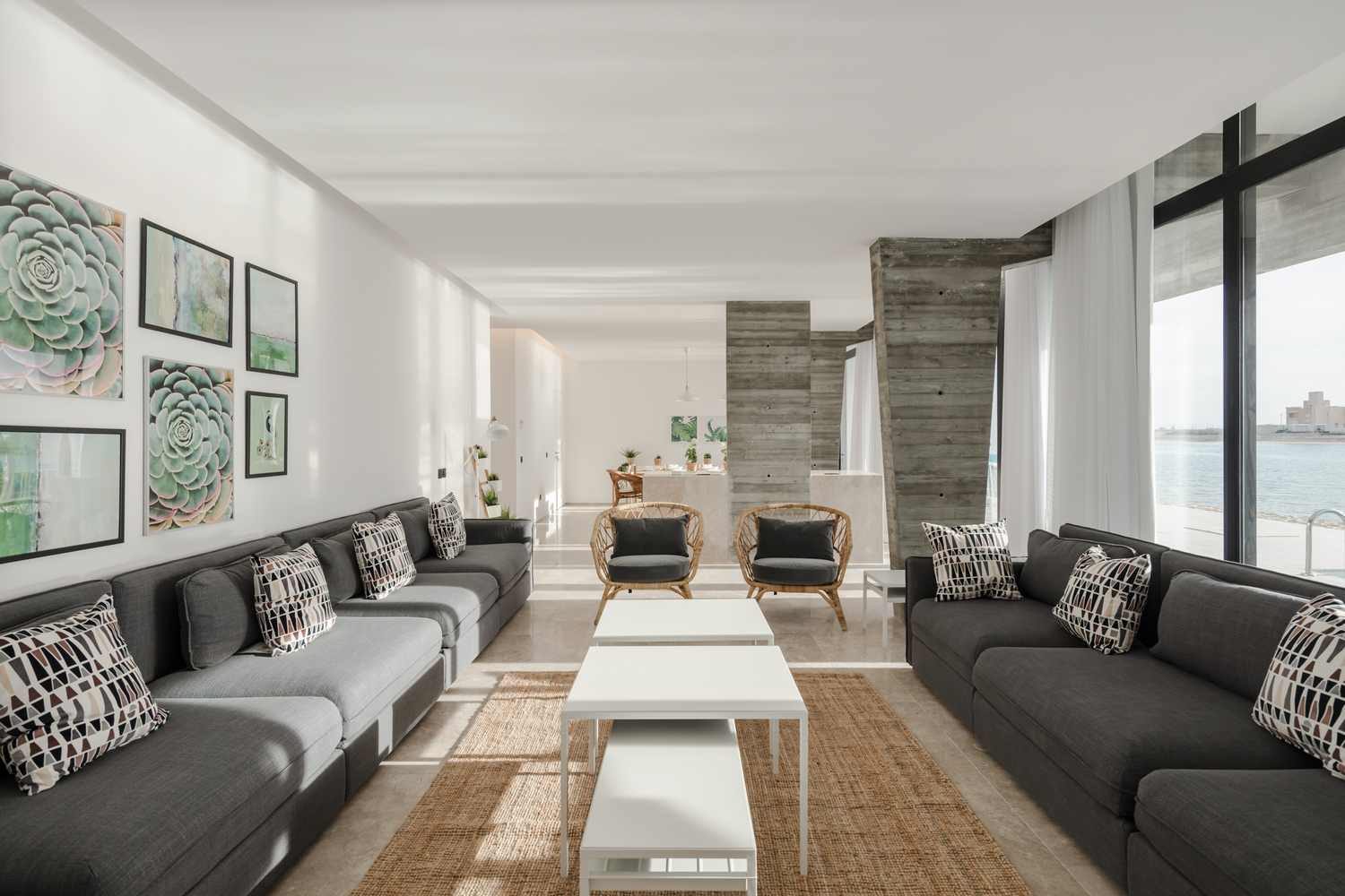 這個(gè)開(kāi)發(fā)項(xiàng)目旨在延長(zhǎng)可可接近的海岸線長(zhǎng)度,讓大海流進(jìn)沙漠,創(chuàng)造出一系列由多個(gè)碼頭和船塢相連的運(yùn)河,并受到許多其他娛樂(lè)活動(dòng)的激活。這五個(gè)住宅的地塊坐落在可俯瞰大海的其中一條內(nèi)運(yùn)河旁。因此將主要日常生活區(qū)與海灘、外部庭院、花園和泳池區(qū)域相連。這些相互連接底層空間讓居住者可以在其間自由穿梭,欣賞運(yùn)河的獨(dú)有景色,使整體空間的流動(dòng)性最大化,并用舒適的方式將室內(nèi)外聯(lián)系起來(lái),某種意義上突破了地塊限制。在地塊的另一側(cè),在入口旁邊是為客人提供的一個(gè)正式社交聚會(huì)場(chǎng)所。