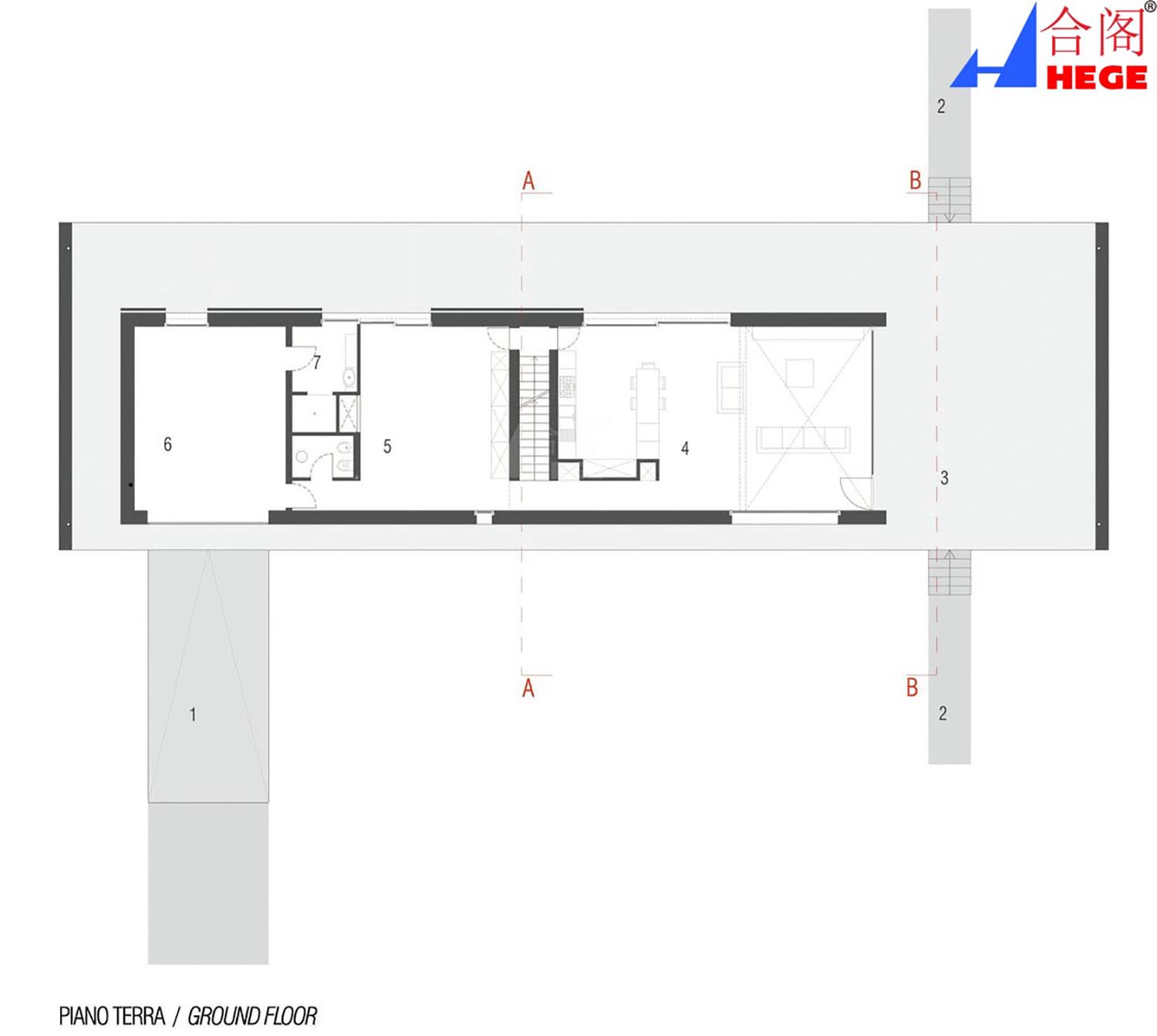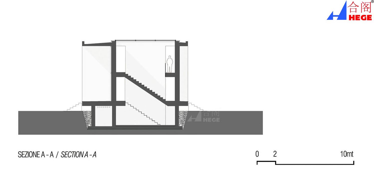 建筑模塊與道路的關(guān)系以及它作為景觀的完整的一部分;這由加強(qiáng)內(nèi)外的視點(diǎn)和通過虛實(shí)(門廊和窗戶)間的互動(dòng)來實(shí)現(xiàn)的。建筑與景觀、遠(yuǎn)與近、公共與私密、觀察者與瞭望臺(tái)的關(guān)系也被納入考慮。